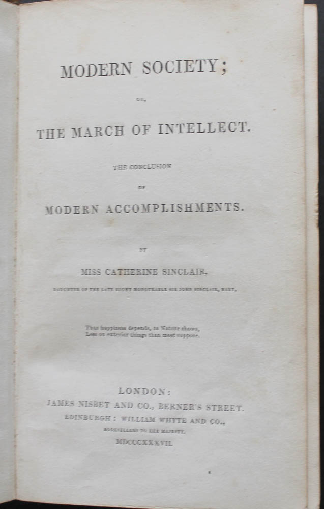 London: James Nisbet, 1837. First edition. 8vo (7 3/4 x 4 3/4 inches), pages: viii:470. Contemporary full calf. The binding very poor, rubbed & chipped. Some light foxing to prelims. but very good internally; an ideal candidate for rebinding and priced to allow for such. Bound without half-title.
