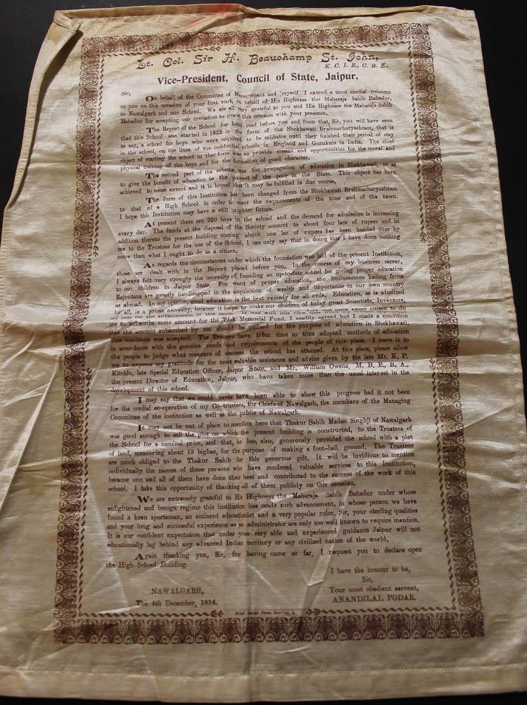 Printed in brown on silk. 17 1/2 x 12 3/4 inches, some ceasing and staining. 4th December 1934.