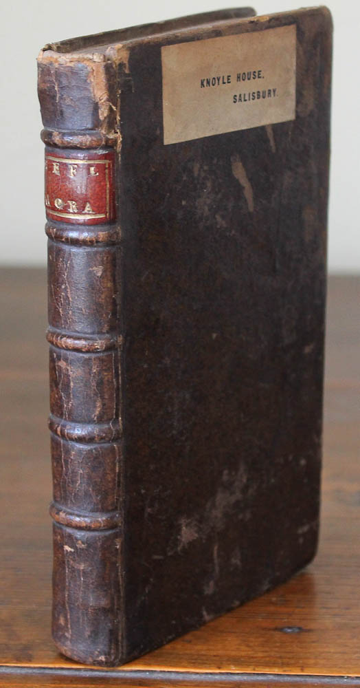 London: for J. Rivington, 1765. Engraved title vignette. Small 8vo (6 3/4 x 4 1/4 inches), pages vi:251. Contemporary full speckled tan calf, sides gilt ruled, spine gilt ruled, raised bands, unlettered. Short split to lower joint, headbands frayed, piece torn from upper blank margin of title. 19th Century ownership inscription on front free endpaper. Overall very good. Rare.
